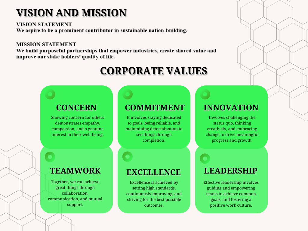 Established in 2021 as a spin-off of Hexagon Chemical Corporation, Hexagon Nutrifood Corporation aims to become the foremost importer and distributor of various agricultural food products. This includes, but is not limited to, chilled or fresh-frozen, raw and semi-processed or processed meats, as well as other meat products, fruits, vegetables, seafood, marine products, and agricultural by-products.
